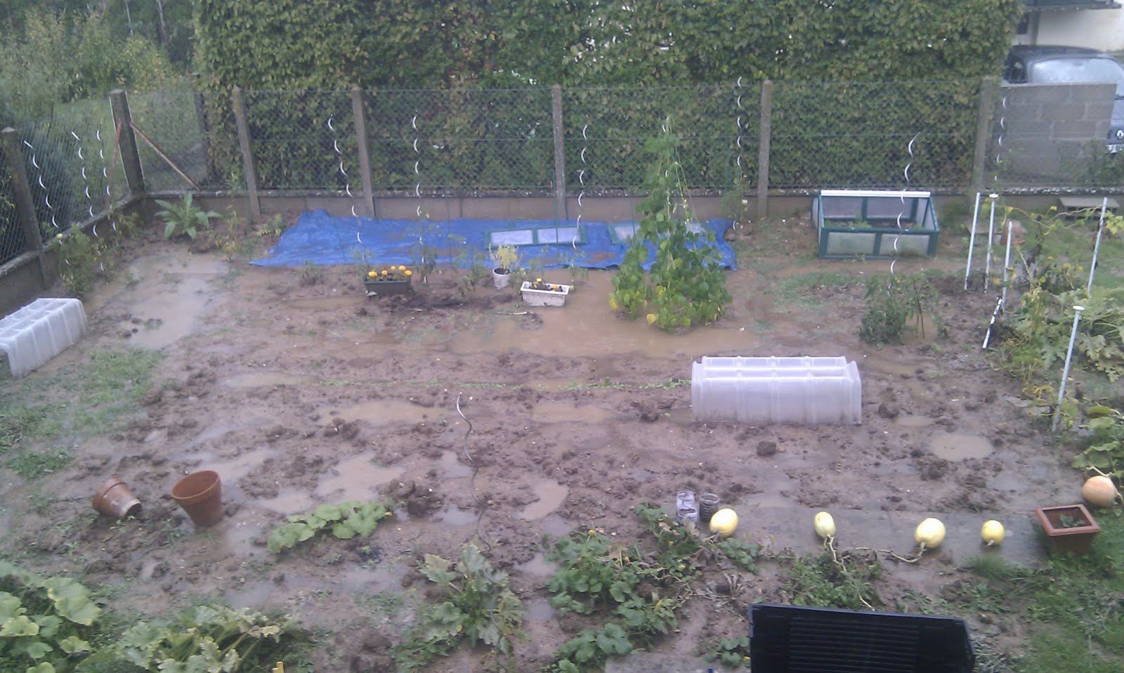 Un gros orage hier soir, 25mm d'eau en quelques minutes, le jardin s'est transformé en patageoire.